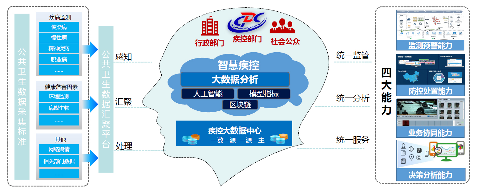 加速推進疾病防控業(yè)務的(de)數(shù)據化(huà),打通(tōng)縱橫公共衛生(shēng)關聯信息壁壘,通(tōng)過大(dà)數(shù)據、人(rén)工(gōng)智能(n$éng)等技(jì)術(shù)重塑優化(huà)業(yè)務流程和(hé) 工(gōng)作(zuò)₽模式,推動公共衛生(shēng)工(gōng)作(zuò)為(wèi)民(mín)服務、防控能(néng)力、決策水(shuǐ)平的(de)持續升級,通(tōng)過“智慧疾控”對(duì®)全市(shì)公共衛生(shēng)安全風(fēng)險看(kàn)得(de) 見(jiàn)、控得(de)住、謀得(de)準。