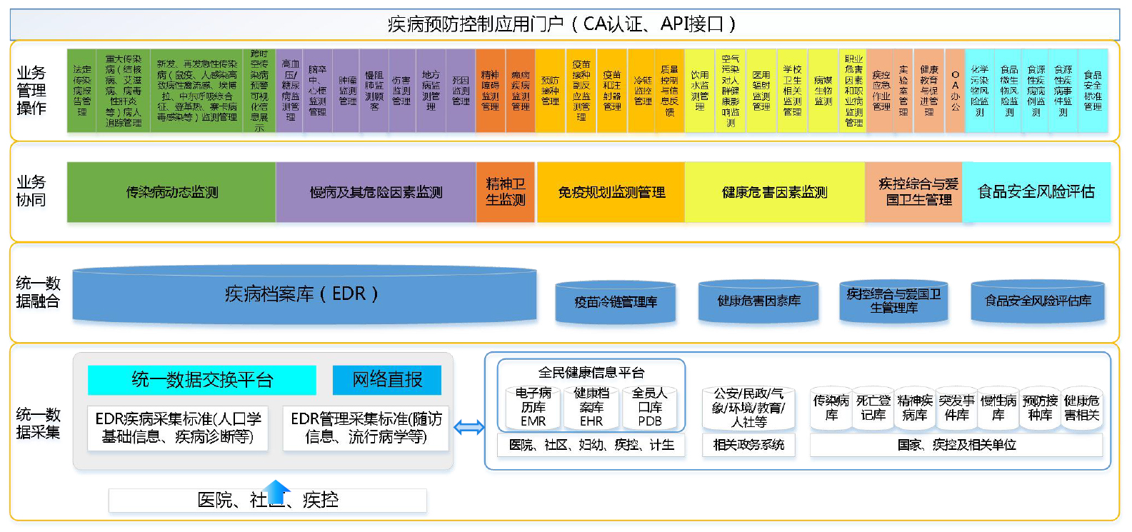 基于EDR構建統一(yī)疾病數(shù)據采集,實現(xiàn)以人(rén)為(wèi)核心的(de)疾病動态監測管理(lǐ)應用(yòng)。