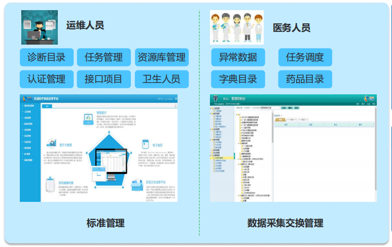 數(shù)據采集交換調度、醫(yī)療衛生(shēng)術(shù)語字典對(duì)照(zhào)、數(s$hù)據标準化(huà)、 數(shù)據安全管理(lǐ)。