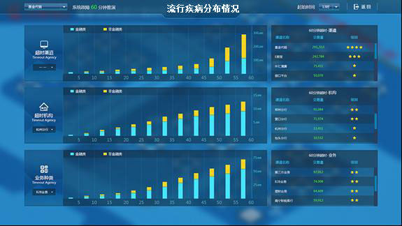 彙集區(qū)域內(nèi)各級醫(yī)院上(shàng)報(bào)的(de)門(mén)診流行(xíng)疾病、住院重點疾病及重點手術(shù)疾病等進行(xíng)數(shù)據收↑集,通(tōng)過數(shù)據分(fēn)析系統對(duì)患者 診療及住院等進行(xíng)智能(néng)分(fēn)析,為(wèi)監管部門(mén)掌握重點疾病分(fēn)布及診•療質量提供數(shù)據支撐。