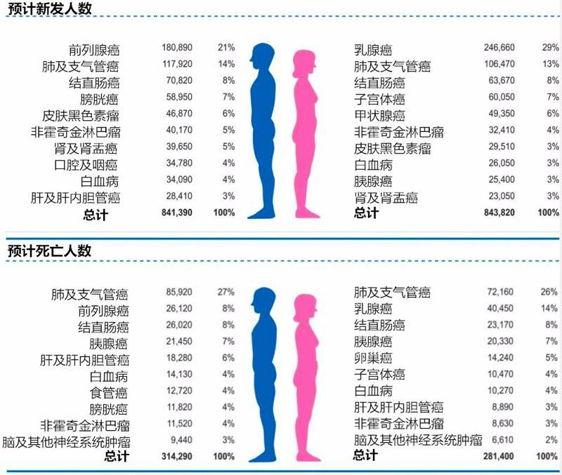 十大(dà)易發癌症新發人(rén)數(shù)及死亡人(rén)數(shù)預測(按性别分(fēn))