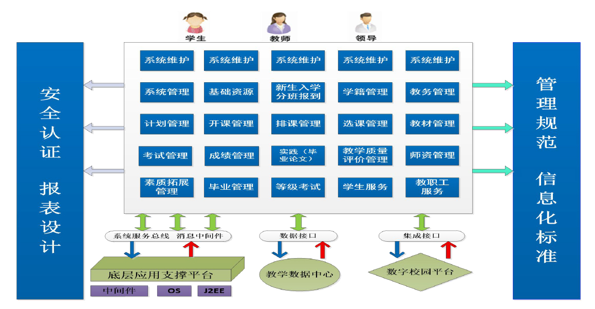 教學管理(lǐ)的(de)核心是(shì)“教”與“學”,對(duì)教學管理(lǐ)人(rén)員(yuán)來(±lái)說(shuō)“教”的(de)核心是(shì)課程建設與管理(lǐ),“學”的(de)核心是(shì)人(rén)才培養管理(lǐ),教學管理(lǐ)信息化(huà)需要>(yào)對(duì)這(zhè)兩者做(zuò)到(dào)充分(fēn)解構、有(yǒu)機(jī)關聯,唯有(yǒu)如(rú)此,才×能(néng)建設出功能(néng)強大(dà)、擴展性強、智能(néng)化(huà)程度高(gāo)的(de)管理(lǐ)信息系統。