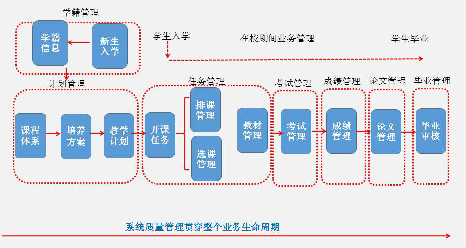 因學習(xí)年(nián)限、學分(fēn)修讀(dú)要(yào)求等管理(lǐ)方式不(bù)同而分(fēn)設的(de)學年(nián)制(zhì)和(hé)學分(fēn)制(zhì ),其共同表現(xiàn)都(dōu)是(shì)人(rén)才培養方案的(de)管理(lǐ),人(rén)才培養方案具體(tǐ)體 (tǐ)現(xiàn)在課程設置表和(hé)畢業(yè)要(yào)求,圍繞課程和(hé)培養要(yào)求來(lái)設計(jì)開(kāi)課、排課、選課♦、成績、教材、畢業(yè)審核等一(yī)系列管理(lǐ)流程,可(kě)以擺脫學年(nián)制(zhì)、學分(fēn)制(zhì)等管理(lǐΩ)形式對(duì)系統架構造成的(de)幹擾,構建實現(xiàn)學年(nián)制(zhì)與學分(fēn)制(zhì)平穩過渡、支持教學改革創新的(de)有(yǒu)生(shēng)命力的(φde)教學服務系統。