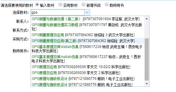 (3)教材填報(bào)功能(néng):允許教師(shī)從(cóng)教材書(shū)目庫中選擇要(yào)使用(yòng)的(de)教材或新增教材書(shū)目,同時(shí)上(shàng)傳自(zì)編講義;為(wèi)方便教師(shī)填報(b§ào)教材,允許教師(shī)從(cóng)書(shū)目庫中選擇教材或是(shì)繼續沿用(yòng)以往學期使用(yòng≥)過的(de)教材;同時(shí)也(yě)允許教師(shī)提交個(gè)人(rén)用(yòng)書(shū)申請(qǐng)&;