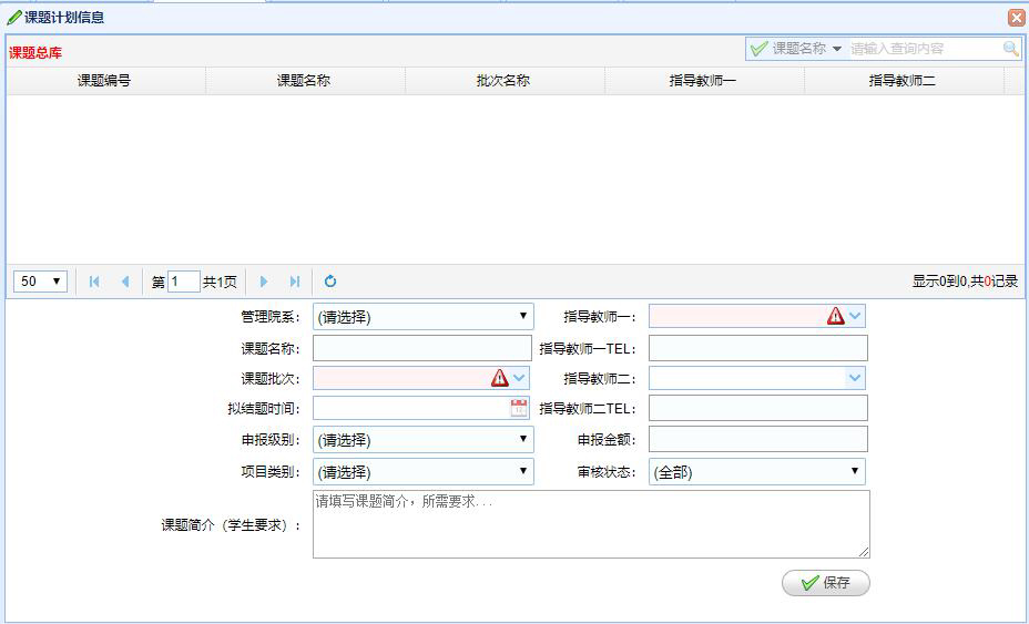 課題計(jì)劃管理(lǐ):管理(lǐ)創新課題的(de)計(jì)劃,管理(lǐ)對(duì)應院系、課題名稱和(hé)批次→、結題時(shí)間(jiān)、申報(bào)的(de)級别和(hé)類别,對(duì)應的(de)二個(gè)知(zhī)☆道(dào)教師(shī),學生(shēng)負責提交課題簡介。