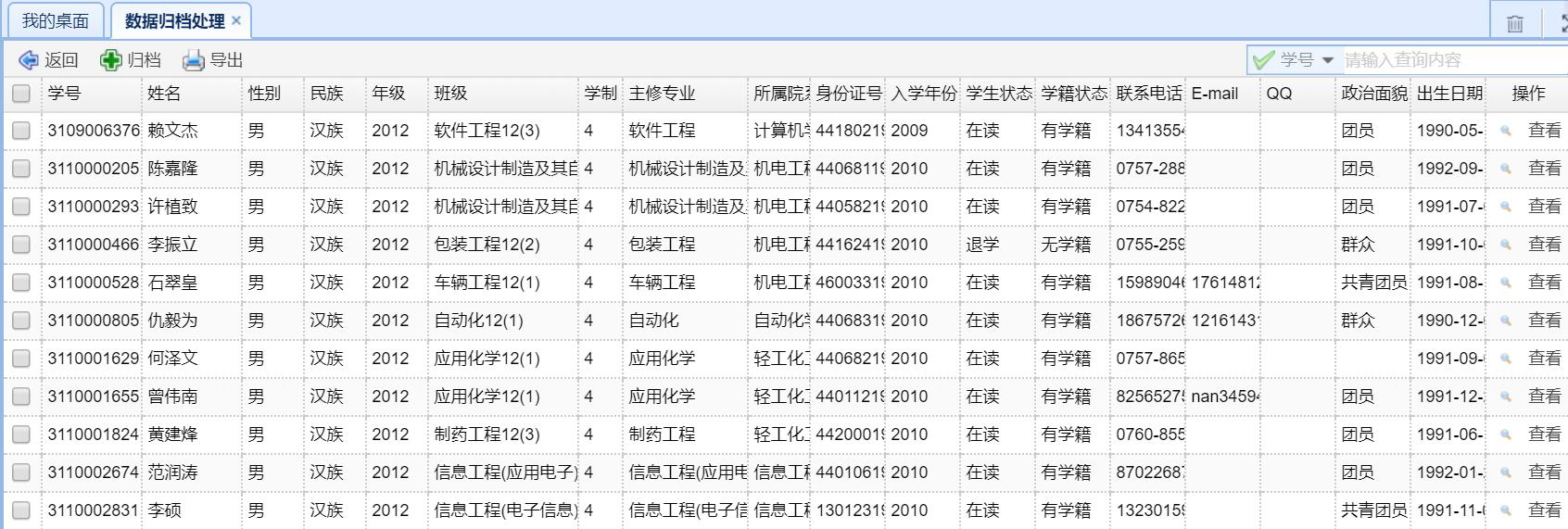 系統提供數(shù)據電(diàn)子(zǐ)化(huà)歸檔的(de)功能(néng),可(kě)方便地(dì)實現(xiàn)學籍信息、學生§(shēng)成績等數(shù)據的(de)歸檔,直接生(shēng)成滿足檔案館電(diàn)子(zǐ)化(huà)歸檔要(yào)求的(de)數(shù)據。