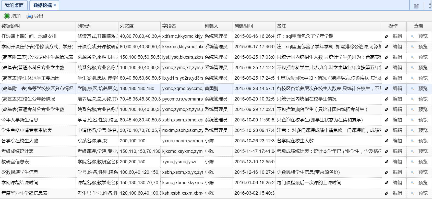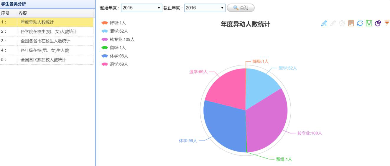 決策支持管理(lǐ)支持對(duì)系統中所有(yǒu)的(de)基礎數(shù)據進行(xíng)數(shù)據分(fēn)析與統計(jì),全方位為(wèi)領導提<供決策分(fēn)析服務,如(rú)學生(shēng)分(fēn)析(如(rú)高(gāo)基表等)、課表分(fēn)析(如(rú)調課情況統計(jì)等)、教學狀态分(fēn)析(如≈(rú)教室使用(yòng)率等)等,并能(néng)以數(shù)據加圖表的(de)方式顯示。系統同時(shí)還(hái)能(néng)提供數(shù)據挖掘接口,用(yòng)戶可(kě∏)以輸入SQL 語句直接從(cóng)系統中輸出各類所需數(shù)據,數(shù)據可(kě)來(lái)€源于系統中的(de)任意表或任意字段。以下(xià)展示幾項系統中的(de)數(shù)據分(fēn)析$: