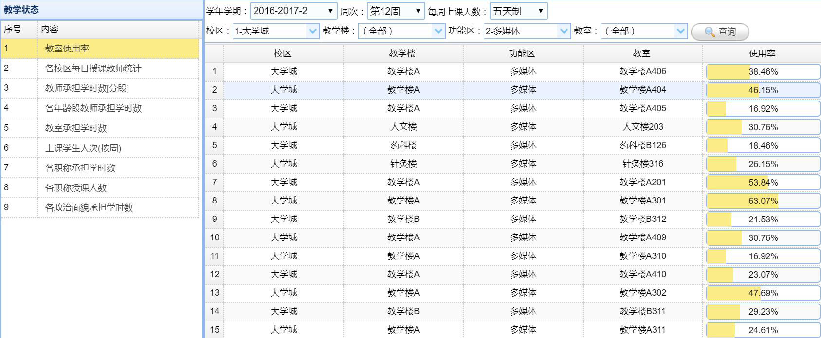 教室使用(yòng)率: