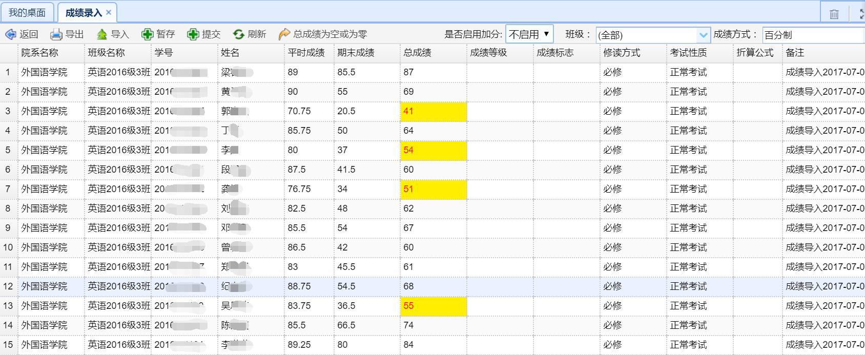 成績錄入(導入):