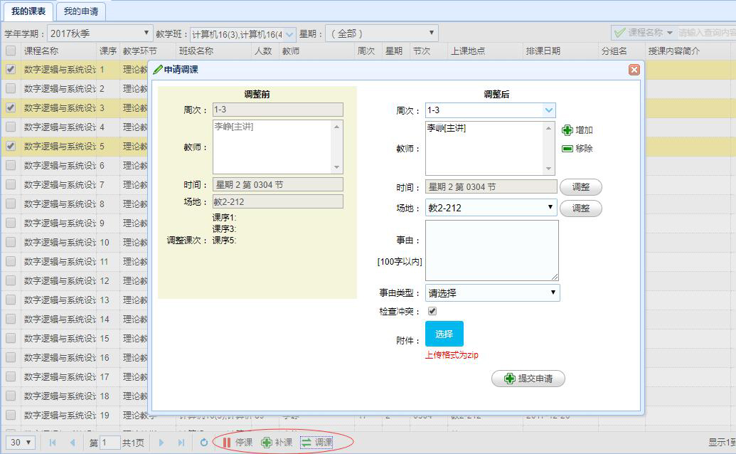 教師(shī)提交調、停、補課申請(qǐng):