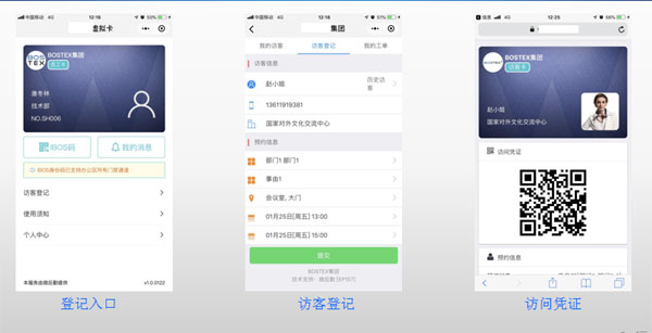 B、第三方預約系統調用(yòng)BOSTEX的(de)訪客登記接口增加訪客。